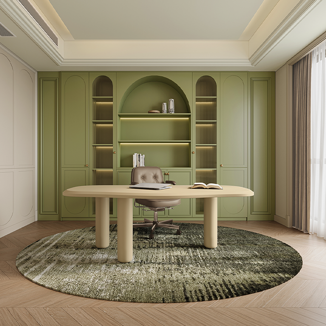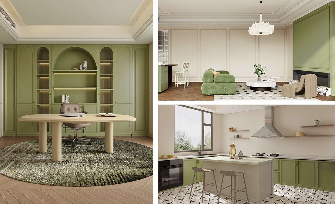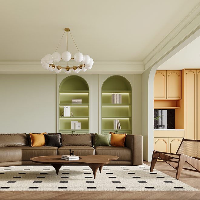 奶油色如同午后的暖陽灑向漫山花野,而綠色的加入,在甜美的基調(diào)中添加了清新與明快的氛圍。每一寸空間都充滿了屬于家的濃情愛意,每一抹色彩都譜寫著生活的美好與浪漫。