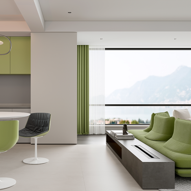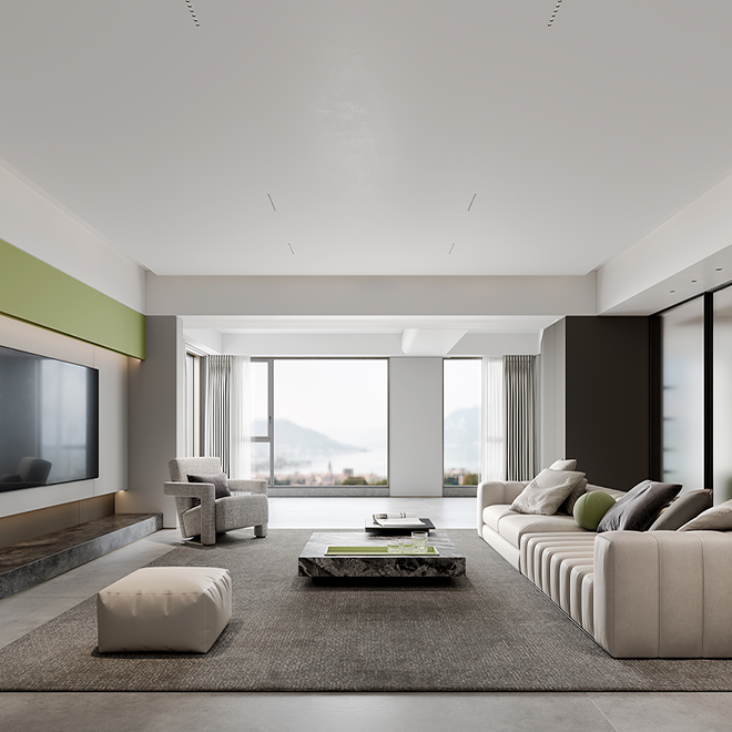 家是一片內(nèi)心的綠洲,冷峻灰色孕育出充滿生機的綠意,何嘗不是生活帶來的驚喜。充滿簡約感的色系營造沉穩(wěn)干練的空間格調(diào),綠色點綴其間,猶如一股清風(fēng),讓每一寸空間都充滿生命的律動。